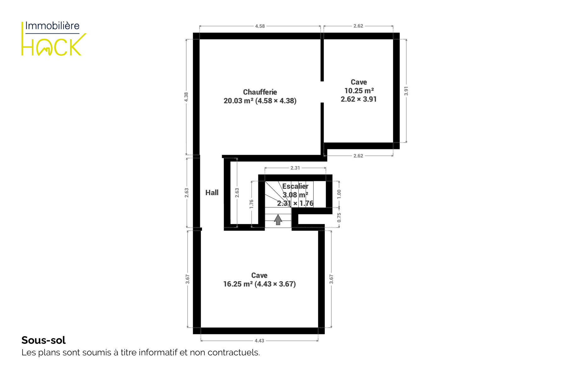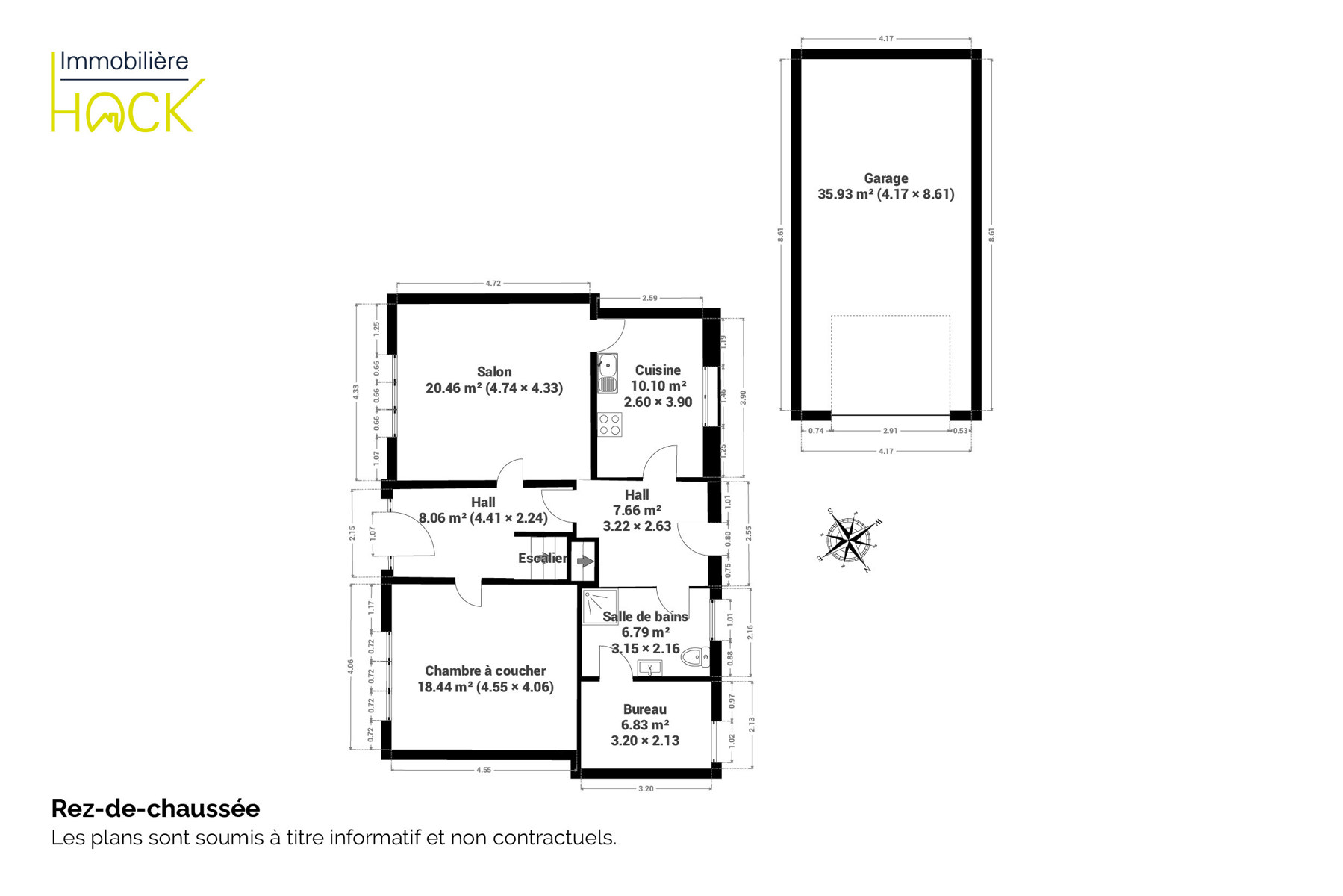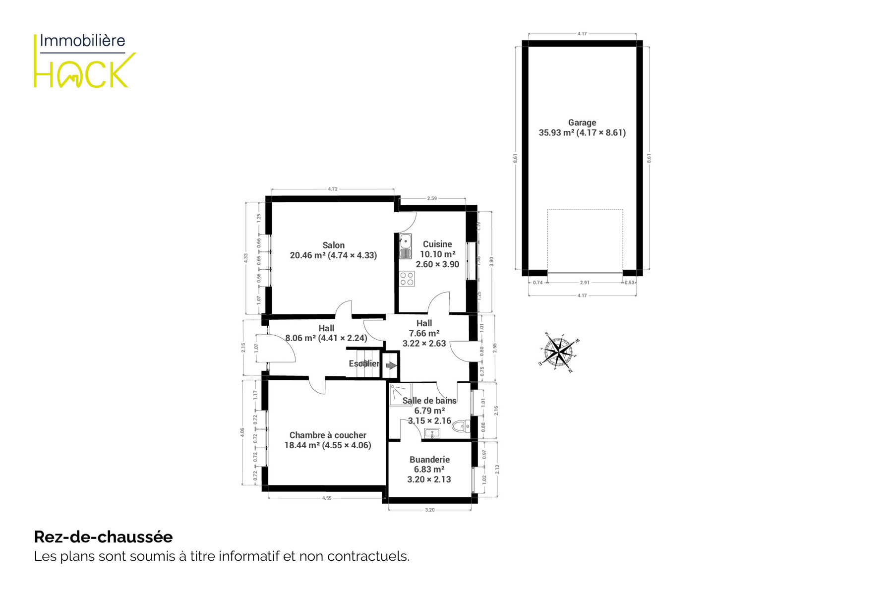 Le rez-de-chaussée se compose d’un hall d’entrée, d’un séjour lumineux, d'une cuisine équipée, d'une chambre, d' une salle de bain que d’une buanderie. À l’étage, le hall de nuit dessert 3 chambres, une deuxième salle de bains (douche et bain), ainsi qu’une pièce de rangement.