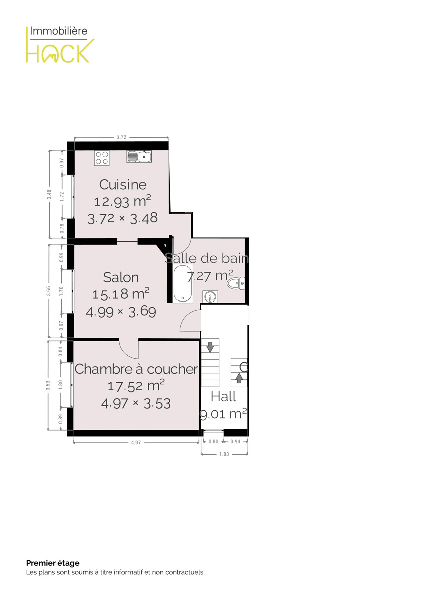 Au premier étage d'une petite copropriété sans ascenseur, l'appartement se compose d’un séjour lumineux, d’une cuisine équipée, d'une chambre ainsi que d’une salle de bains.