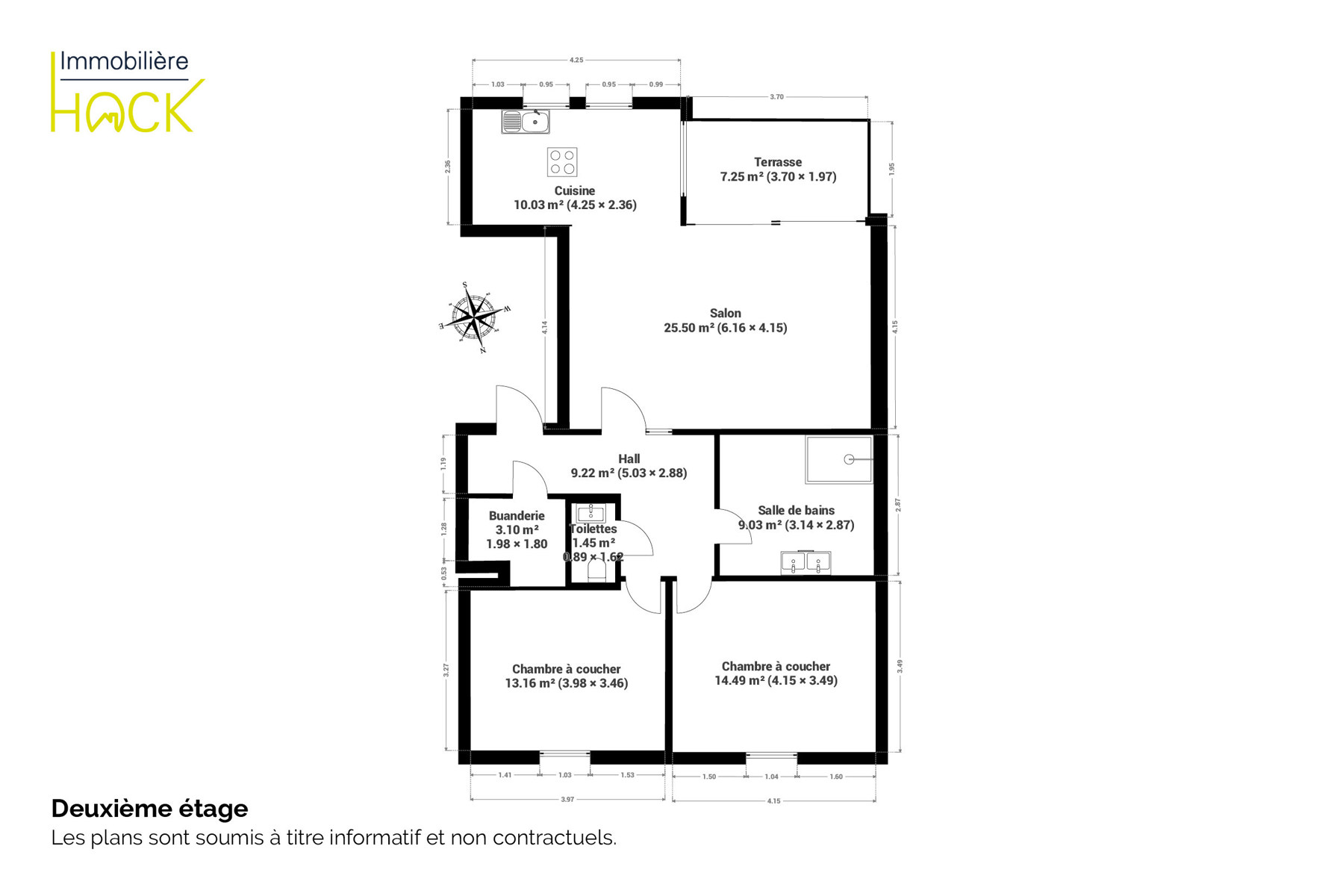 Situé au deuxième étage d’une résidence avec ascenseur, cet appartement comprend un hall d’entrée, un séjour avec cuisine ouverte et équipée, une salle de douche, une buanderie, un WC séparé ainsi que deux chambres. Une terrasse orientée plein sud, un jardin commun et un garage complètent l'ensemble.