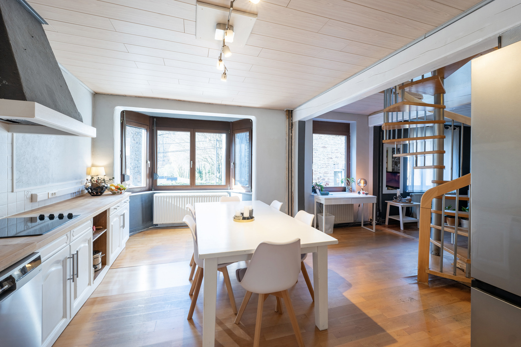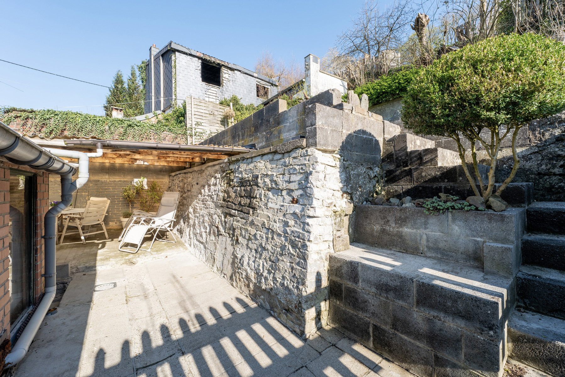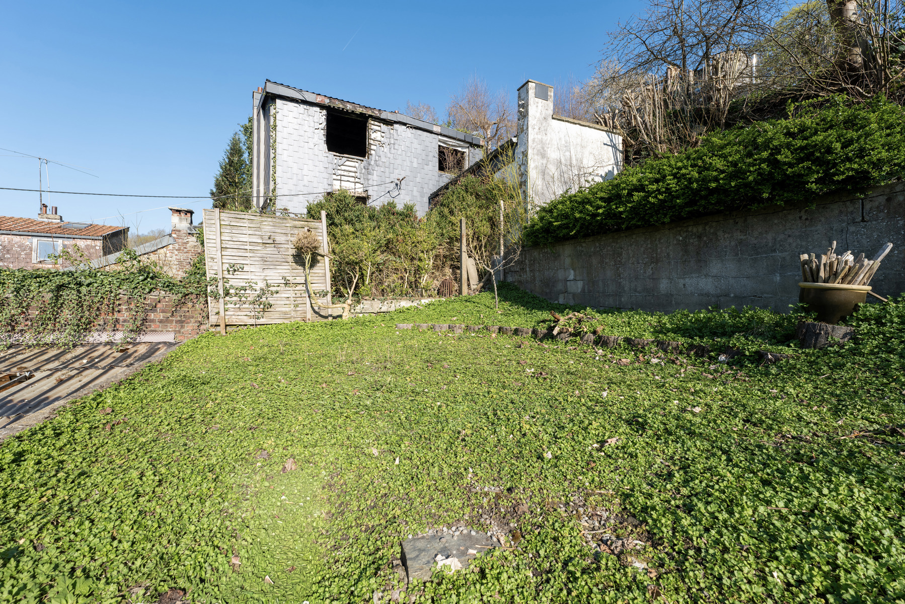 Située en retrait de la route et proche du centre de Spa, maison deux chambres (poss.trois) avec garage, terrasse et jardin.