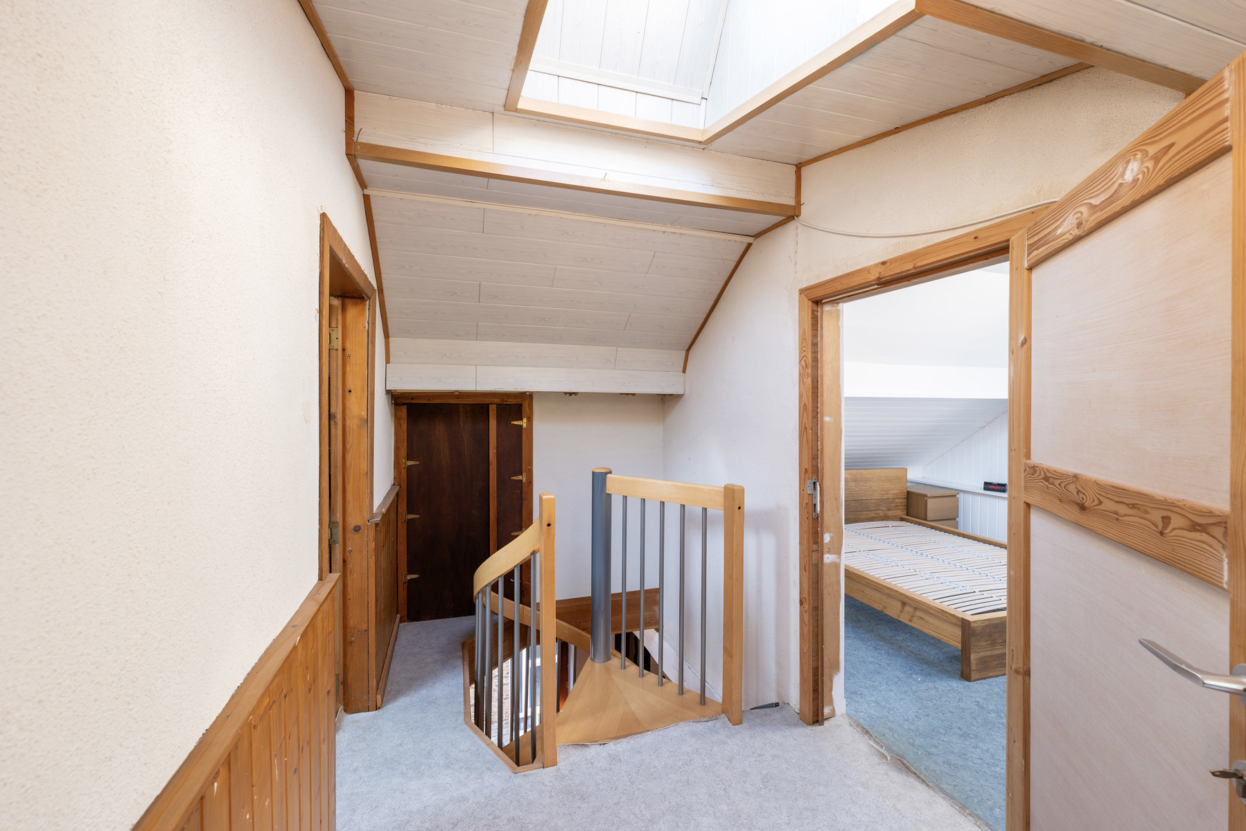 Ce bien se compose au rez-de-chaussée d'un hall d'entrée donnant l'accès à une chambre et une salle de bains. Le premier étage dispose d'un séjour, d'une cuisine et d'un espace buanderie. Au deuxième étage, un hall de nuit dessert une chambre et un grenier où il y a la possibilité d'y faire une troisième chambre. Un garage, une terrasse et un jardin complètent l'ensemble.